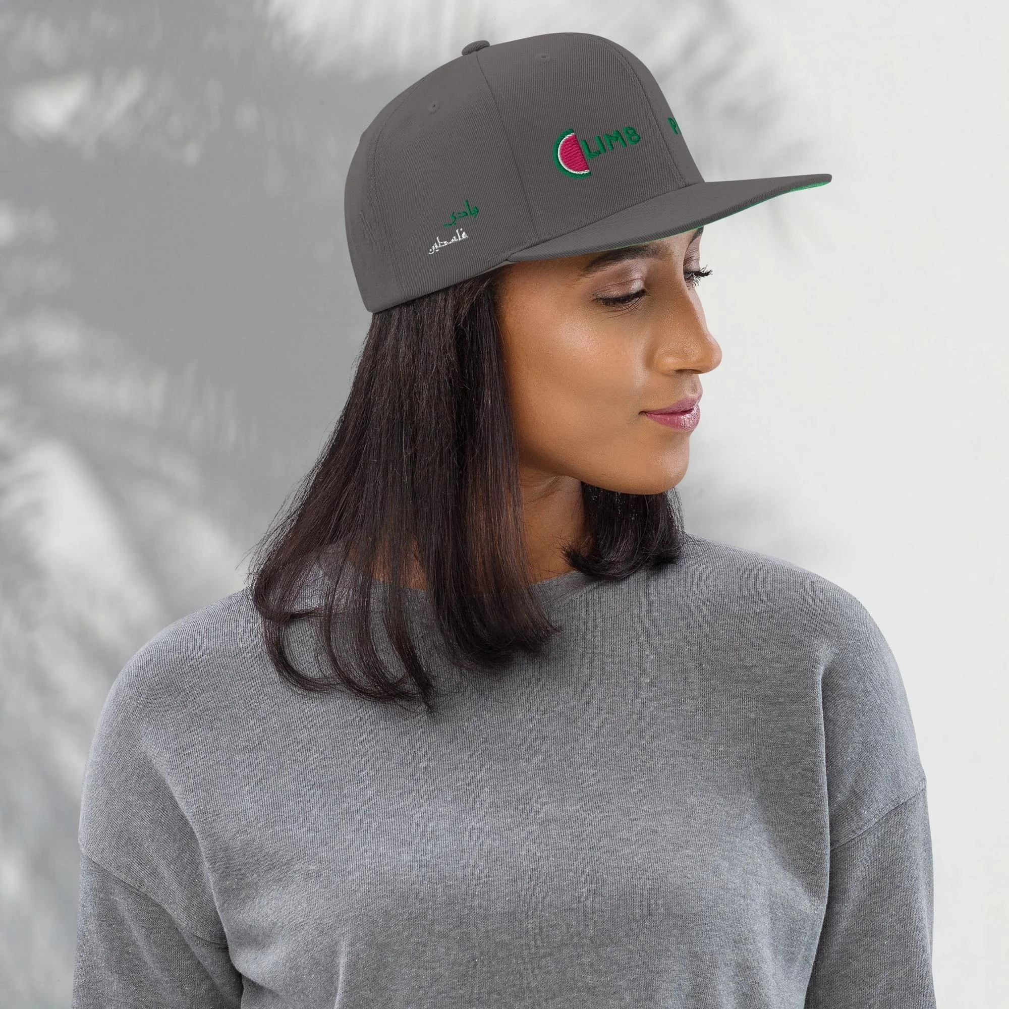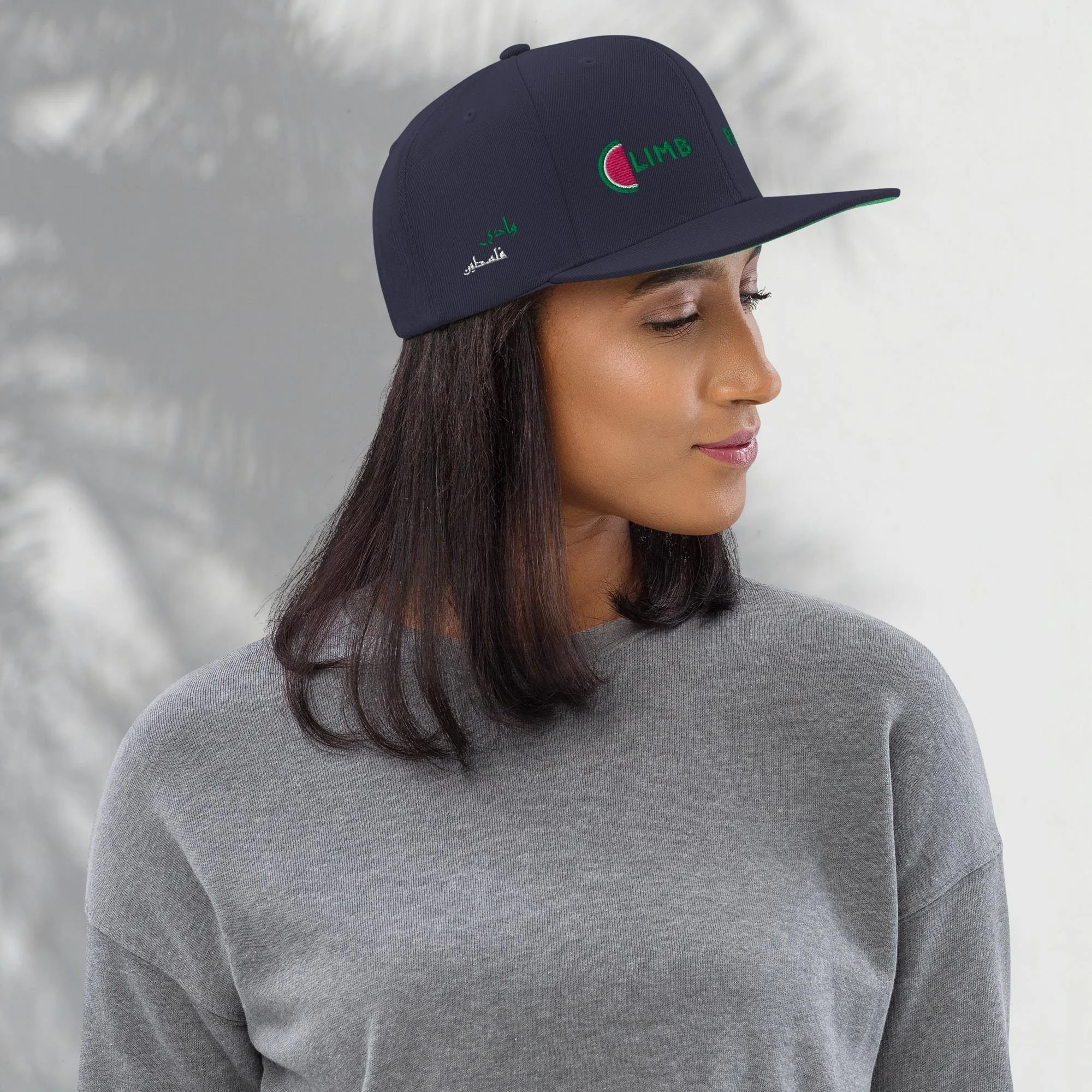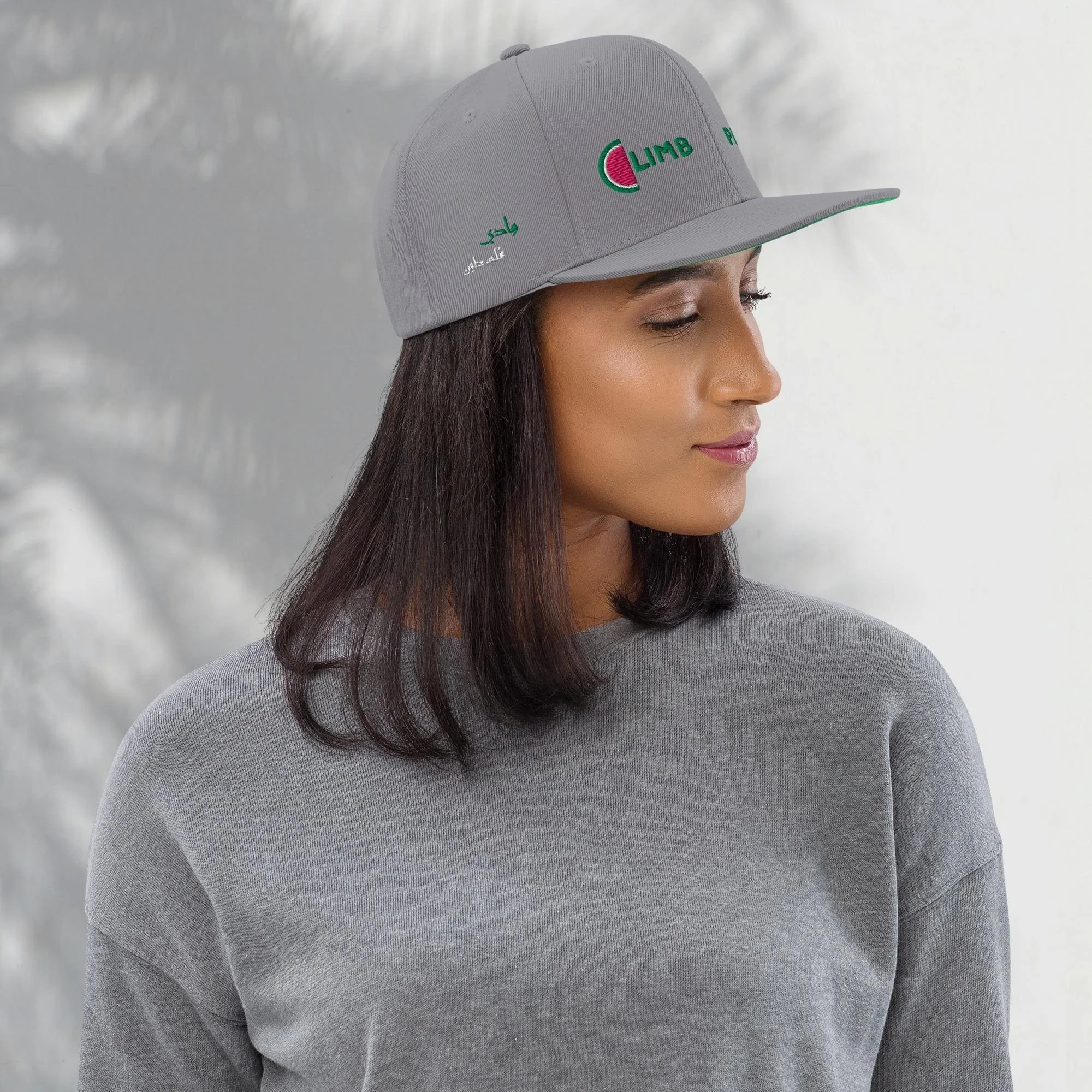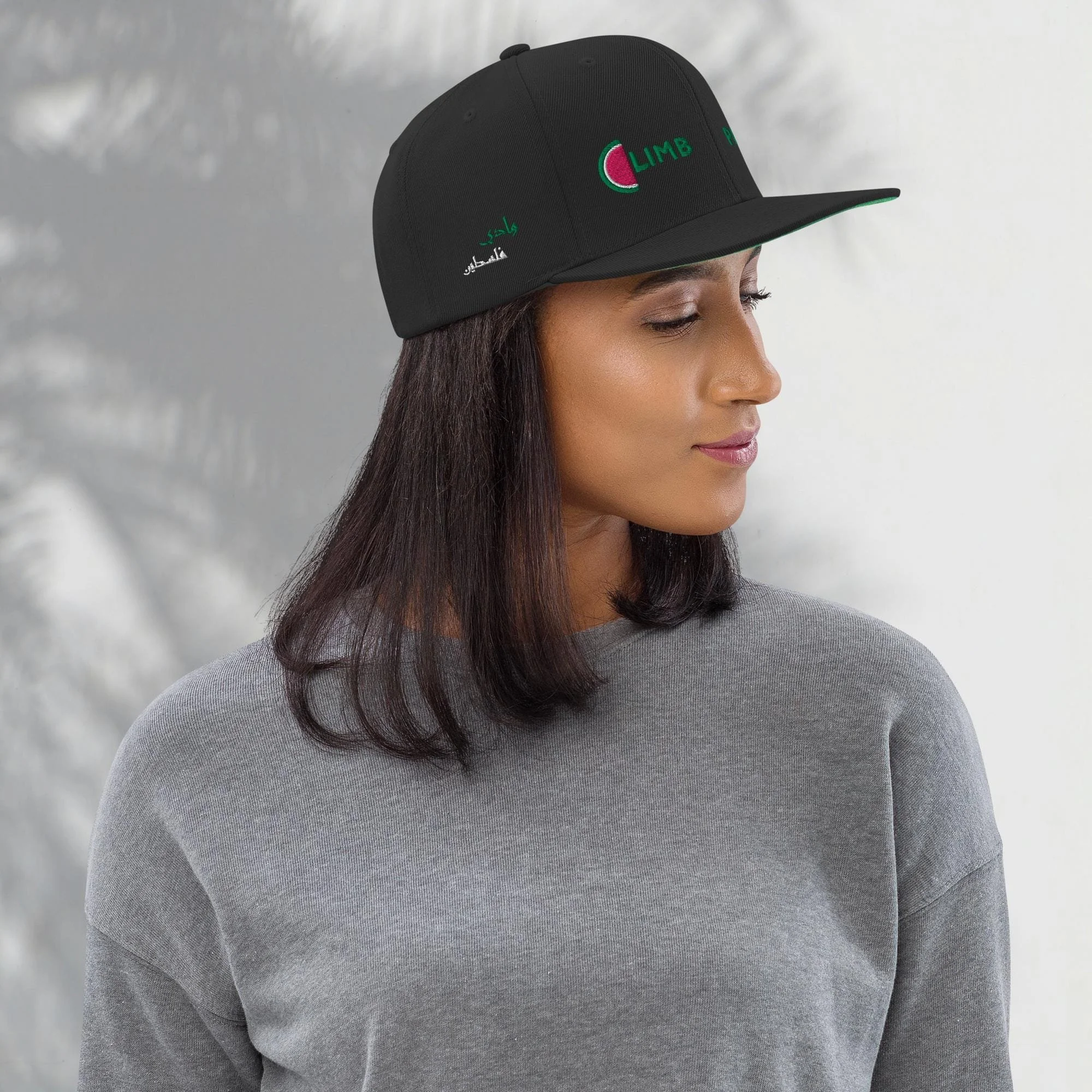 Store › Climb Palestine Hat (Embroidery) Image 1 of 11 Image 2 of 11 Image 3 of 11 Image 4 of 11 Image 5 of 11 Image 6 of 11 Image 7 of 11 Image 8 of 11 Image 9 of 11 Image 10 of 11 Image 11 of 11 Climb Palestine Hat (Embroidery) €35.00 This hat is structured with a classic fit, flat brim, and full buckram. The adjustable snap closure makes it a comfortable, one-size-fits-most hat. • 80% acrylic, 20% wool• Green Camo is 60% cotton, 40% polyester• Structured, 6-panel, high-profile• 6 embroidered eyelets• Plastic snap closure• Green undervisor• Head circumference: 21⅝″–23⅝″ (54.9 cm–60 cm) Primary color: Dark Navy Black Black/ Neon Pink Black/ Silver Navy Dark Grey Silver Natural/ Black White Add To Cart Added! This hat is structured with a classic fit, flat brim, and full buckram. The adjustable snap closure makes it a comfortable, one-size-fits-most hat. • 80% acrylic, 20% wool• Green Camo is 60% cotton, 40% polyester• Structured, 6-panel, high-profile• 6 embroidered eyelets• Plastic snap closure• Green undervisor• Head circumference: 21⅝″–23⅝″ (54.9 cm–60 cm)
